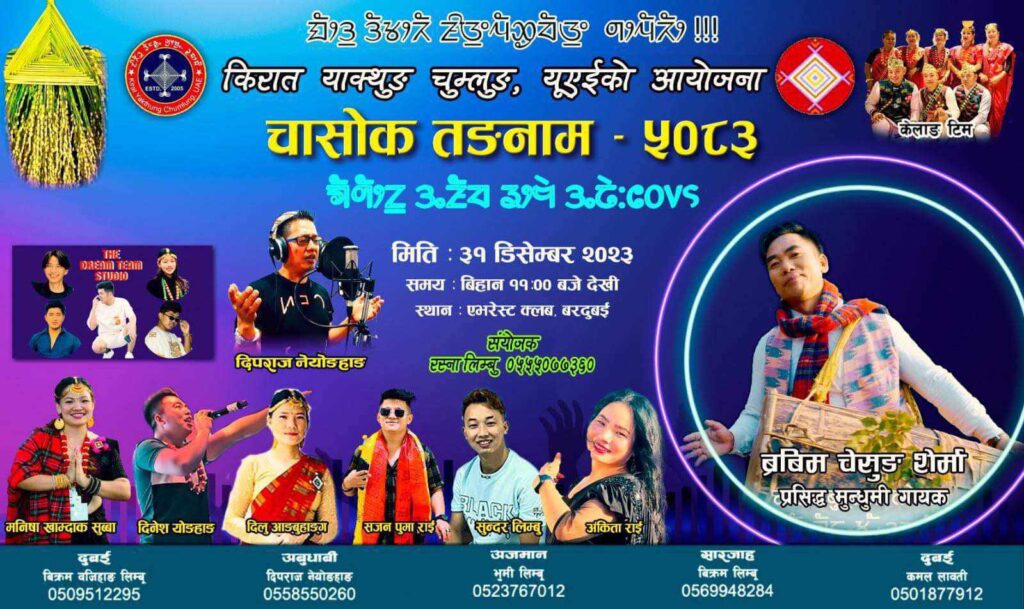 ७ पुस २०८०, युएइ। किरात याक्थुङ चुम्लुङ युएइले विविध कार्यक्रम गरी चासोक तङनाम ५०८३ (वि.सं.२०८०) मनाउने भएको छ।