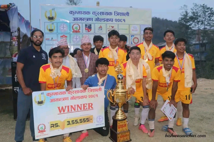 २३ बैशाख, २०८० पाँचथर । पाँचथरको कुम्मायक गाउँपालिकामा जारी कुम्मायक कुस्सायक त्रिशाली आमन्त्रण गोल्डकपको उपाधि वाइवाइ पाँचथर फुटवल क्लव पाँचथरले उचालेको छ।