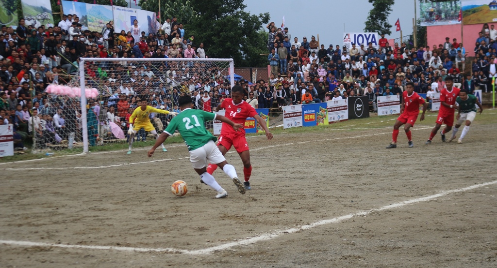 ६ भदौ २०८१, ताप्लेजुङ। झापाको बिर्तामोड युनाइटेड क्लव ‘ए’ डिविजन त्रिभुवन आर्मीको चुनौतीलाई पन्छाउदै जारी दोस्रो ताप्लेजुङ गोल्डकप फुटवल प्रतियोगिताको सेमीफाइनलमा प्रवेश गरेको छ।