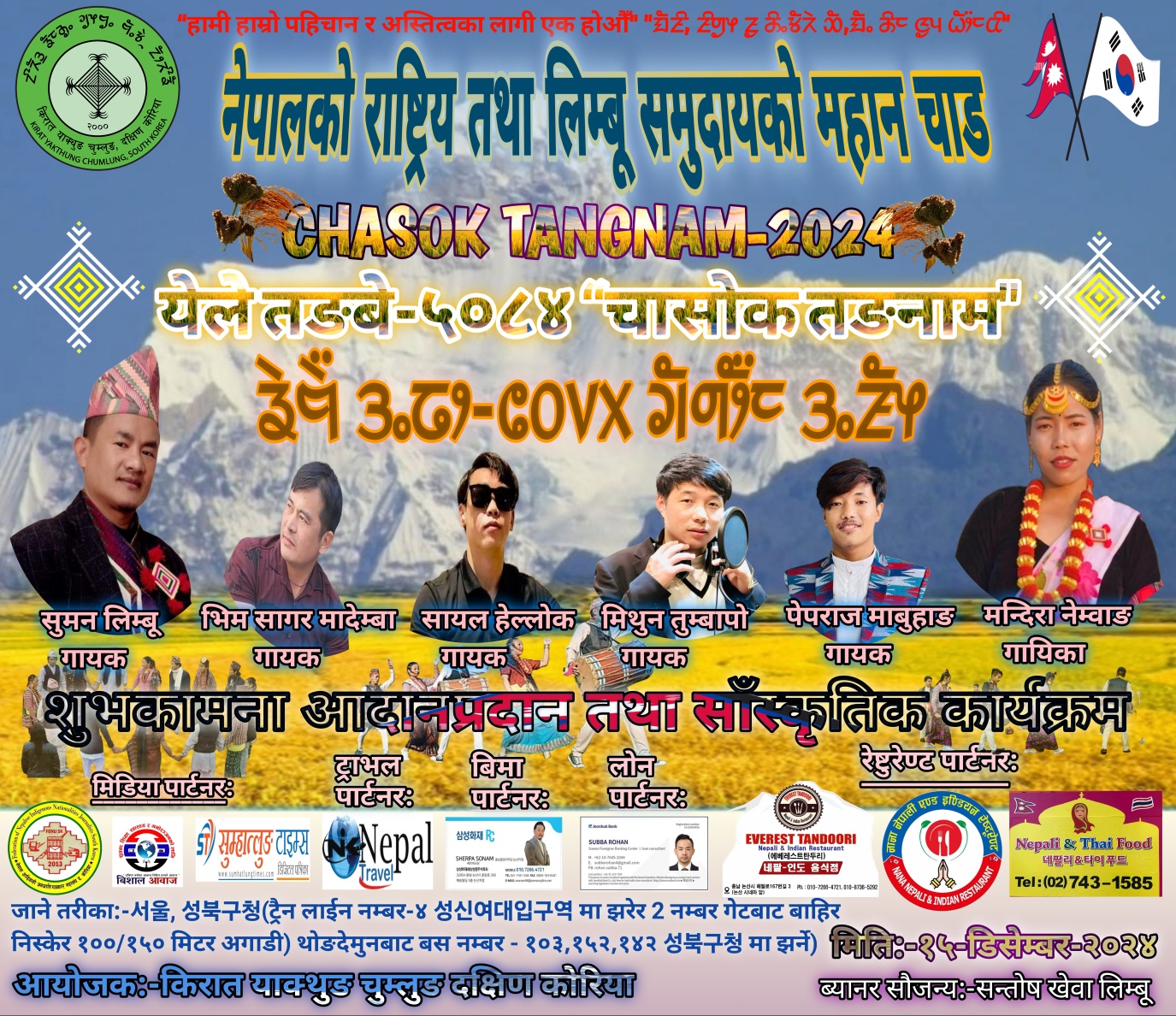 २१ मंसिर २०८१, दक्षिण कोरिया। किरात याक्थुङ चुम्लुङ, दक्षिण कोरिया याक्थुङ (लिम्बू)हरुको महान पर्व चासोक तङनाम मनाउने तयारीमा जुटेको छ।