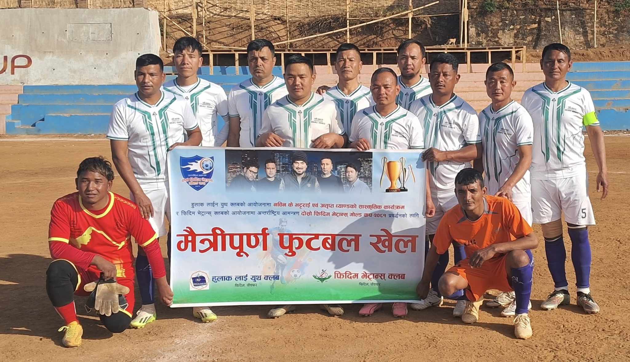 फिदिम: भेट्रान्स कप प्रवर्धनका लागि मैत्रीपूर्ण फुटबल खेल सम्पन्न भएकाे छ । अन्तर्राष्ट्रिय आमन्त्रण दोस्रो फिदिम भेट्रान्स् गोल्ड कप प्रवर्धनको लागि आयाेजित मैत्रीपूर्ण खेलमा बाैद्व भेट्रान्स क्लव रानीटार बिजयी भएकाे हाे । शनिवार फिदिम मा.विकाे खेल मैदानमा सम्पन्न मैत्रीपूर्ण खेलमा फिदिम भेट्रान्स क्लवलाई १-० गाेल अन्तरले पराजित गरेकाे हाे । ४० वर्ष माथिका खेलाडीहरुको सहभागिता रहने प्रतियोगिता माघ ९ गतेदेखि १२ गतेसम्म हुनेछ । प्रतियाेगितामा आयोजक फिदिम भेट्रान्स क्लब सहित युनाइटेड फ्रेन्डस क्लब बुङकुलुङ दार्जिलिङ, धरान भेट्रान्स सुनसरी, दुधे भेट्रान्स झापा, रेडस्टार भेट्रान्स झापा,गोरख भेट्रान्स इलाम, बाैद्ध भेट्रान्स रानीटार र मोरङ भेट्रान्सको सहभागिता रहने आयोजकले जानकारी दिएकाे छ ।
