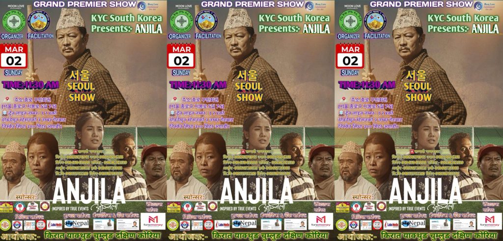 किरात याक्थुङ चुम्लुङ दक्षिण कोरियाको आयोजना तथा नेपाल फुटबल महासंघ दक्षिण कोरियाको सहजीकरण र समन्वयमा मार्च २ तारिख आइतबारका दिन थोङदेमुन स्थित 종로 구민회권– 동대문, Jongno-gu Citizens’ Association Dongdaemun को सुविधा सम्पन्न हलमा ‘अञ्जिला’को च्यारिटी साे हुन लागेको हो।