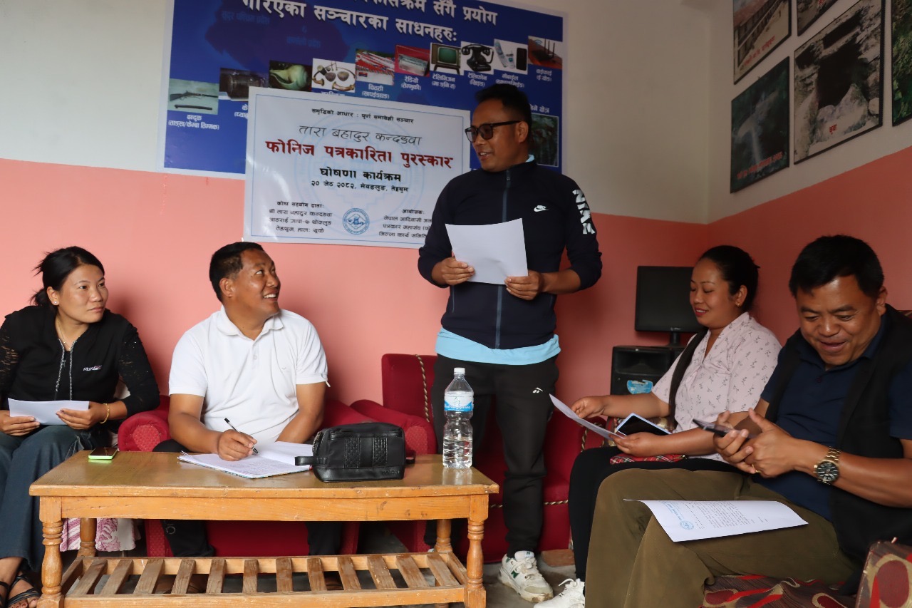 २० जेठ २०८२, तेह्रथुम। नेपाल आदिवासी जनजाति पत्रकार महासंघ (फोनिज) जिल्ला कार्य समिति तेह्रथुमले दुई लाख रुपैंयाँको पुरस्कार कोष स्थापना गरेको छ।