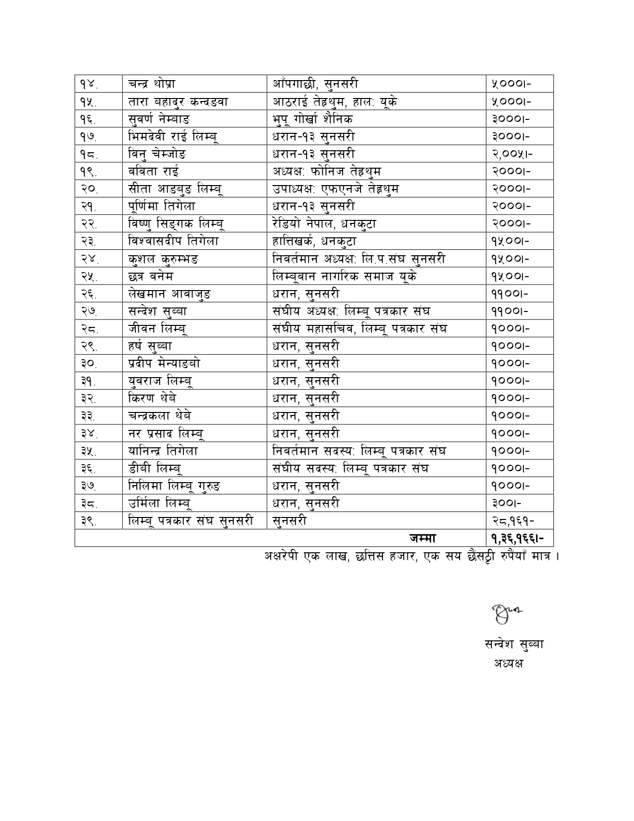 लिम्बू पत्रकार संघले सञ्चालन गरेको अभियानमा सहयोग गर्ने महानुभावहरुः