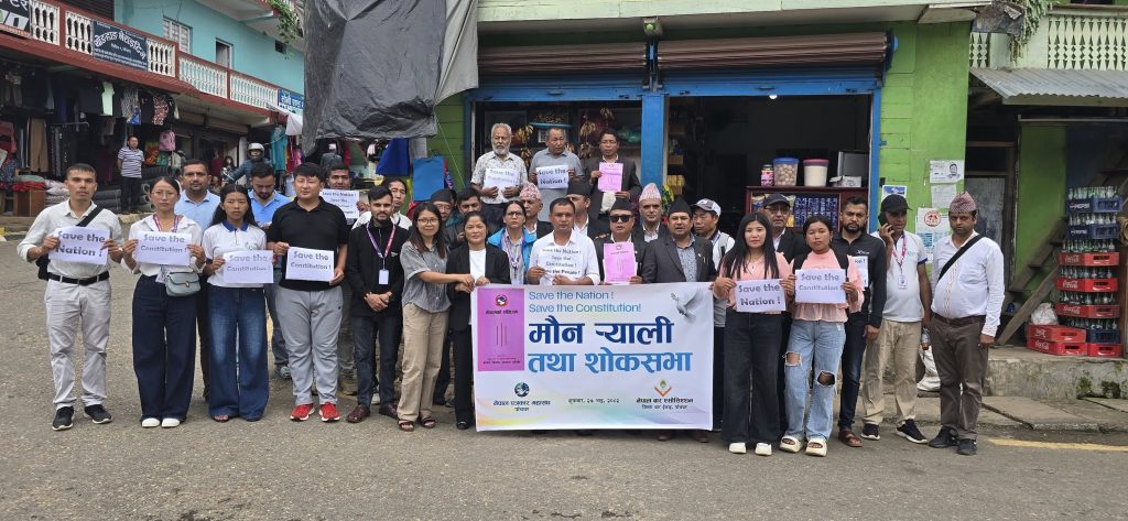 २७ भदौ २०८२, पाँचथर। नेपाल वार एसोसिएशन, जिल्ला वार इकाई, पाँचथर र नेपाल पत्रकार महासंघ पाँचथर शाखाले शुक्रबार सदरमुकाम फिदिममा मौन र्याली निकालेका छन्।