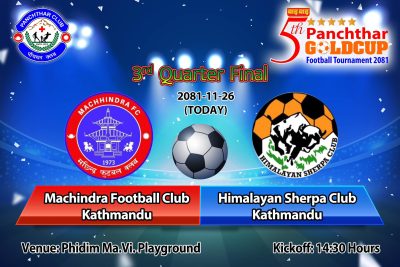 पाँचथर गोल्डकपः आज मच्छिन्द्र फुटवल क्लव र हिमालयन शेर्पा क्लव भिंड्दै