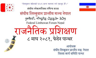 पाँचथर – ८ माघ २०८१ मंगलबार । संलोराम, संघीय लिम्बुवान प्रान्तीय मञ्च नेपालले एक दिने राजनैतिक प्रशिक्षण कार्यक्रम सम्पन्न गरेको छ । मंगलबार फिदिमस्थित जिल्ला पार्टी कार्यालयमा सम्पन्न भएको हो । पार्टीका संघीय सचिव लावाहाङ चेम्जोङ र सहसचिव सागर केरुले …
