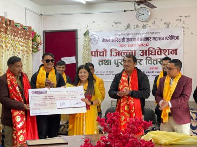 १ माघ २०८१, पाँचथर। नेपाल आदिवासी जनजाति पत्रकार महासंघ (फोनिज) पाँचथरको पाँचौं जिल्ला अधिवेशन सोमबार सम्पन्न भएको छ। फिदिम–१ फाल्गुनन्द चोकस्थित नेपाल पत्रकार महासंघको सभाहलमा सम्पन्न अधिवेशनको बन्द शत्रले उपेन्द्र येक्तेनको अध्यक्षतामा नयाँ कार्य समिति निर्वाचित गरेको छ। समितिको उपाध्यक्षमा…