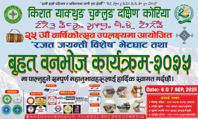 दक्षिण कोरिया २९ सेप्टेम्बर २०२५ किरात याक्थुङ चुम्लुङ जेजुदो शाखा,दक्षिण कोरिया द्धारा सातौ वार्षिकोत्सव तथा कोरियन चाड छुसकको पावन अवसर पारेर 2nd KYC Jeju Do Open Knockout Football Tournament २०२५ सेप्टेम्बर २७ तारिक कार्यक्रम सम्पन्न गरेको छ । खुल्ला नकाउट…